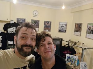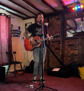 Before the gig, we had a meal at the cafe. The band and the lovely Steve and Michelle Burrows, who own and run Compass. Loads of stories were flying around, Johnny from the band reckons I’m the one full of random tales but if you ask me, Steve Burrows is the true storyteller. The man’s a walking jukebox of anecdotes. The whole Compass crew are something special though, including Jimmy, a truly wonderful gent who’s surprise birthday party was the reason for my last visit to play the cafe in January this year. Its a warm and welcoming place and for a café, the atmosphere is absolutely electric on gig nights so it feels like a second home. I’m waiting to get a shift or two on the cafe rota as I seem to be there so much. Michelle has threatened this so be warned and lets be honest, they have an area named after one of my songs so what’s not to love?